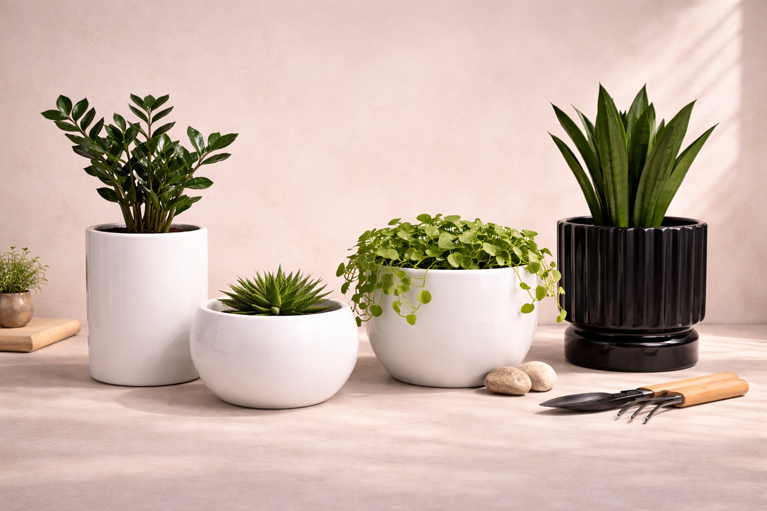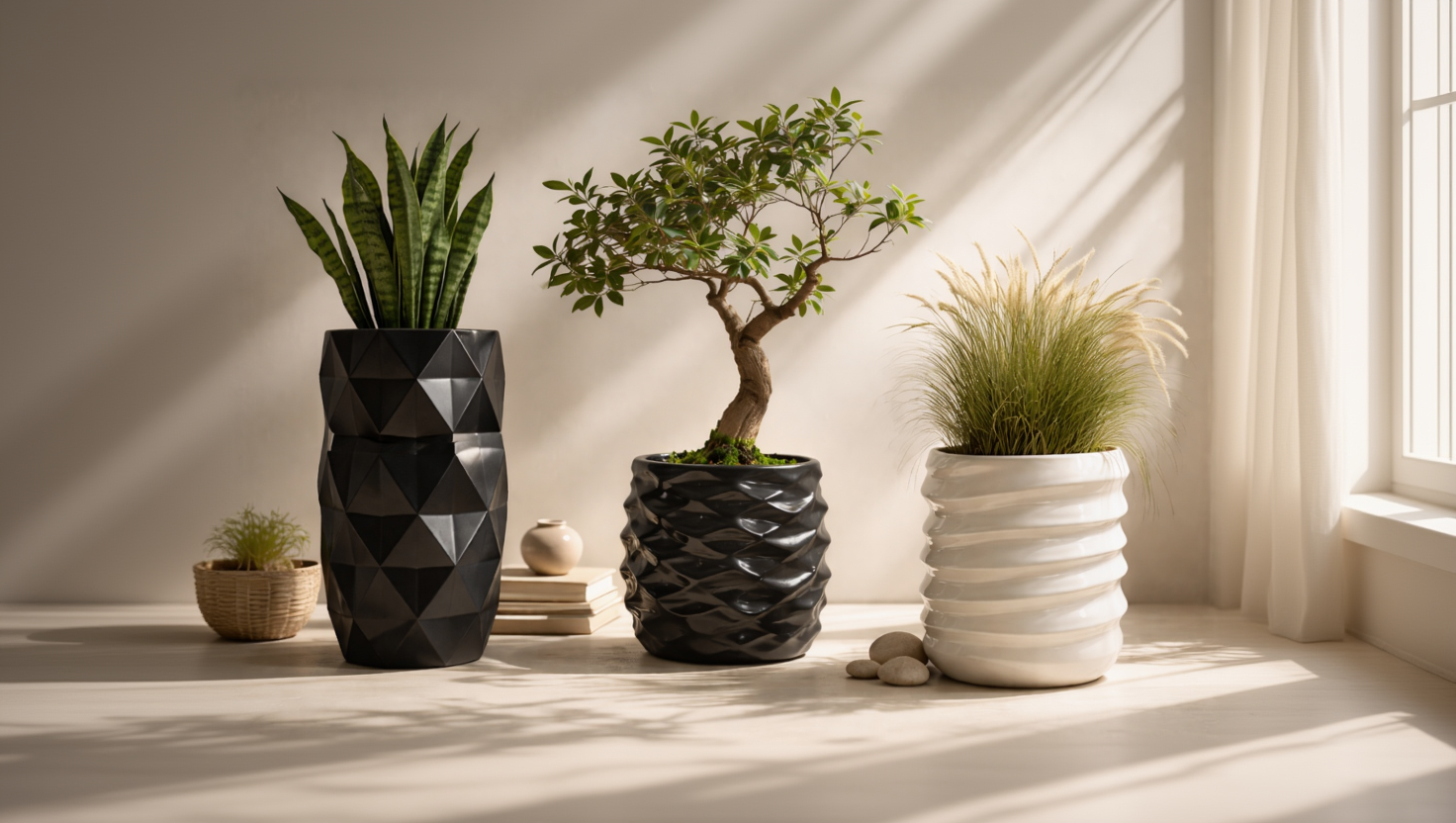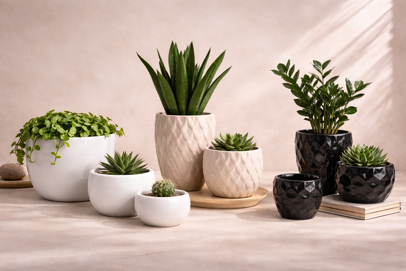 Conjuntos de macetas en diferentes tamaños que combinan perfectamente entre sí para crear decoraciones armoniosas en cualquier espacio.